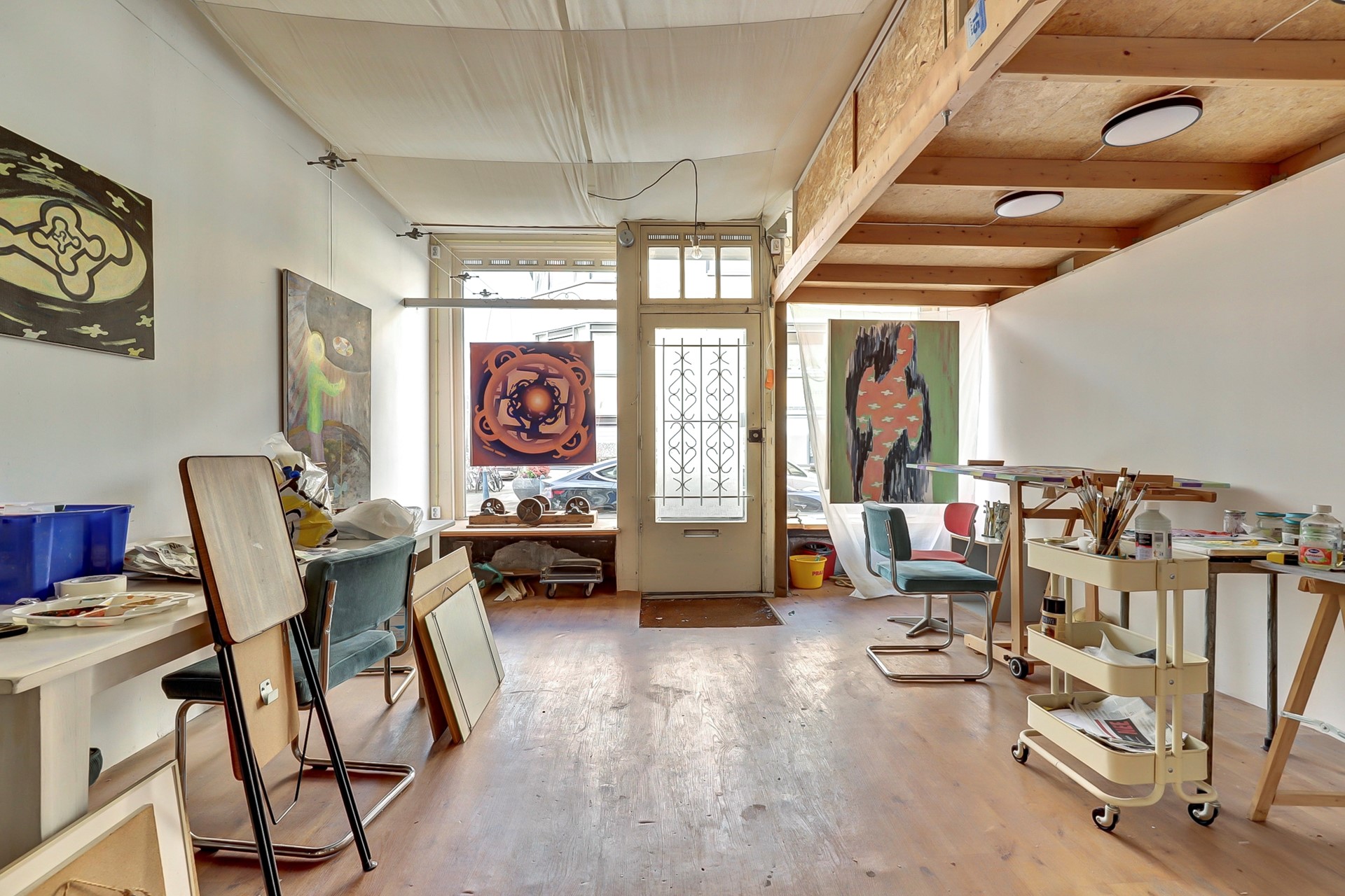 Vanaf de straat kom je via de voordeur direct uit in de werkkamer (ca 8,4x4,5m) met kastruimte en vliering, welke multifunctioneel kan worden gebruikt en openslaande deuren heeft naar de achtergelegen ruime hal (ca 2x3,5m).