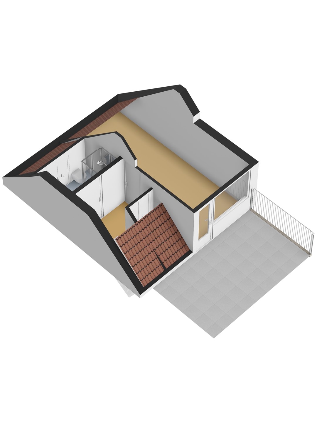 (ca 4,8x2,6m) heeft een deur naar het dakterras (ca 2,7x4,5m).