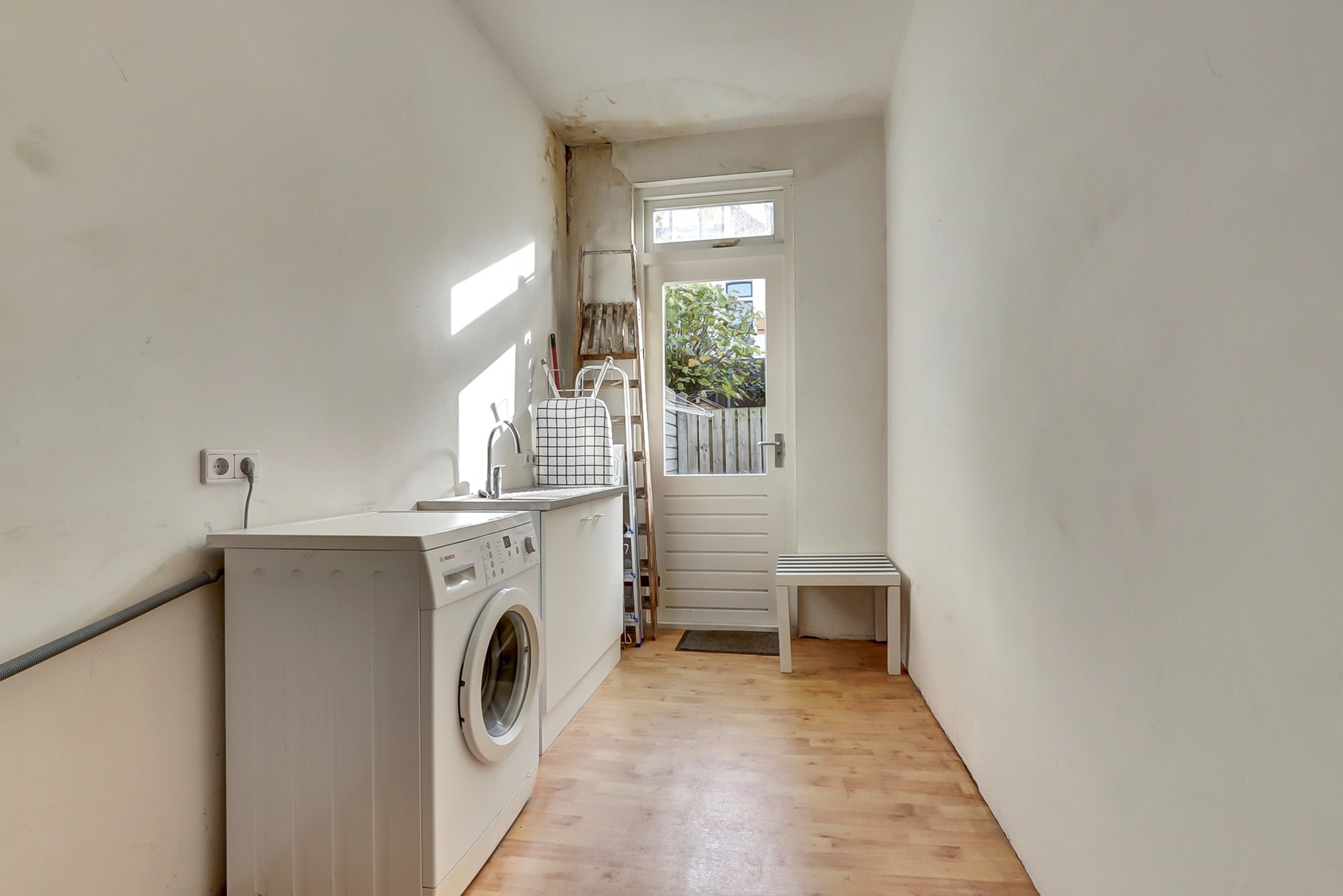 (ca 3,8x1,9) met wasmachineaansluiting en deur naar de tuin. De achtertuin (ca 4,5x4,8m) is gelegen op het Zuid/Oosten.