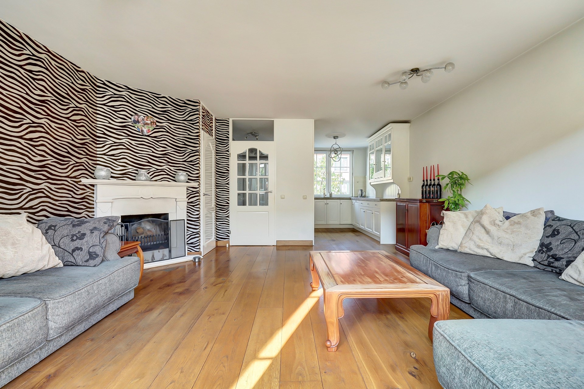 - Woonkamer met openhaard en fraaie houten vloerdelen